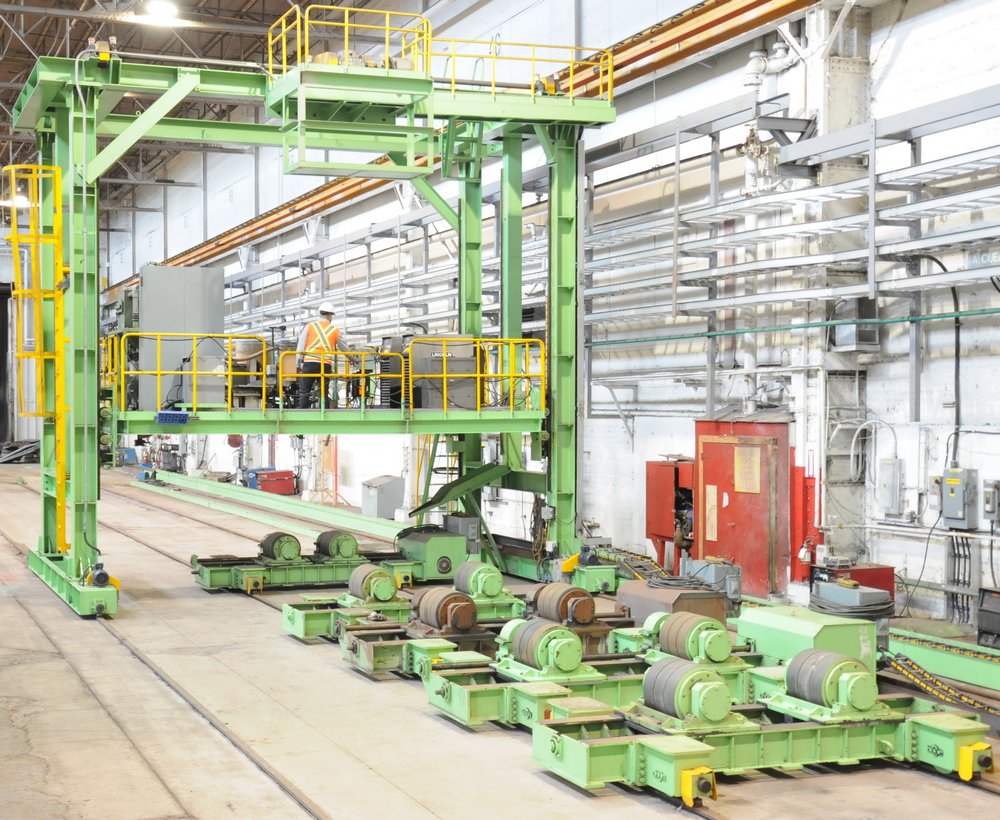 The platform can be made double-sided to serve two lines and it can replace 2–6 columns and boom type welding machines.